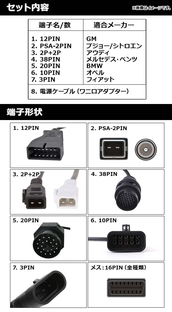 OBD2変換コネクター 変換ハーネス 変換ハーネスセット 変換コネクター 変換コネクターセット GM AUDI FIAT PEUGEOT CITROEN BMW OPEL MERCEDES BENZ ゼネラルモーターズ アウディ ベンツ オペル フィアット プジョー シトロエン 12PIN PSA-30P PSA-30PIN PSA-2P PSA-2PIN 2PIN+2PIN 2P+2P 38PIN 20PIN 10PIN 3PIN ワニ口 アダプター 16PIN ピン 診断ツール スキャンツール OBD ODB2 診断 スキャン 故障診断 ハーネス ケーブル コネクター インターフェイス インターフェース アダプタ コネクタ 変換 接続 診断機 スキャナー 故障診断機
