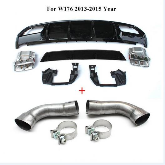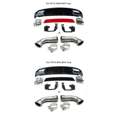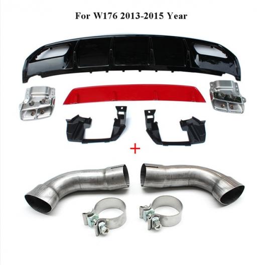 適用: メルセデス・ベンツ A クラス W176 A45 AMG A180 A200 ハッチバック 4ドア 2013-2018 ABS リア ディフューザー バンパー リップ レッド パイプ・ブラック パイプ AL-MM-7971 AL