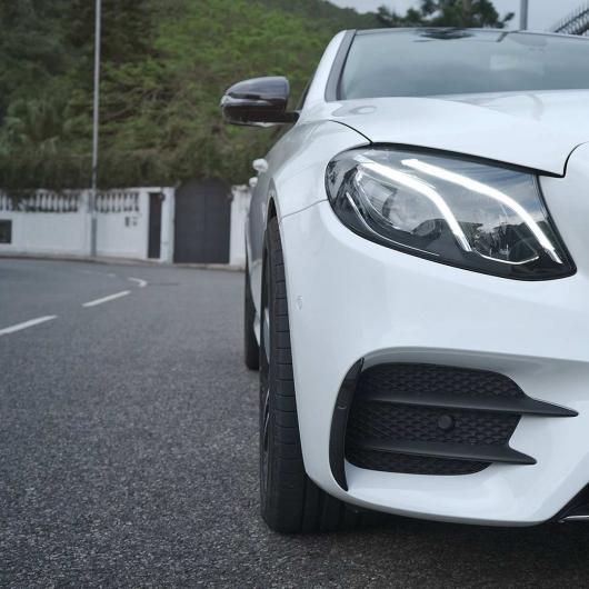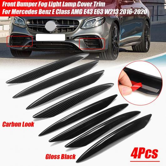 4ピース フロント バンパー フォグライト ランプ 装飾 トリム カバー ストリップ 適用: メルセデス・ベンツ E クラス AMG E43 E63 W213 2016-2020 ステッカー カーボン調・ピアノブラック AL-MM-8497 AL