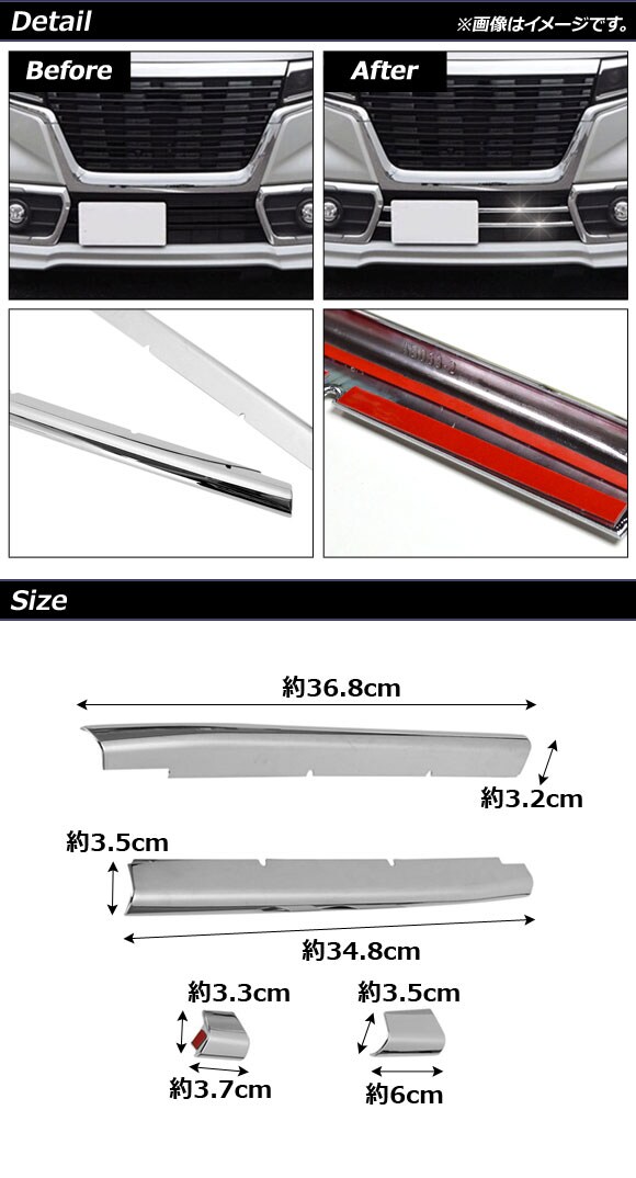 フロントグリルカバー スズキ スペーシアカスタム MK53S 2017年12月~ 鏡面シルバー ABS樹脂製 入数:1セット(4個) AP-FG413