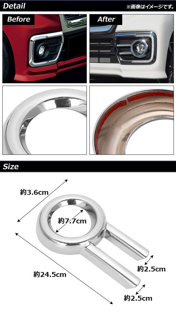フロントフォグカバー スズキ スペーシアカスタム MK53S 2017年12月~ 鏡面シルバー ABS製 入数:1セット(左右) AP-FL223