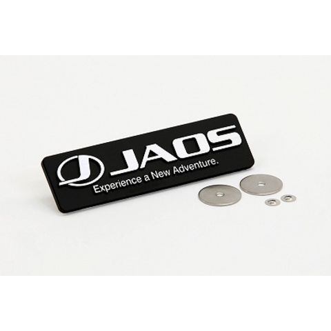 メッシュネットに取付けることができる「JAOS エンブレム アルミ」。