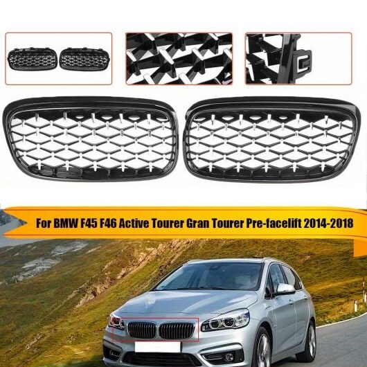 ひし形 スター スタイル フロント グリル バンパー 適用: BMW F45 F46 アクティブ ツアラー グラン ツアラー フェイスリフト前 2014 2015 2016 2017 2018 ハーフ クローム AL-NN-1011 AL