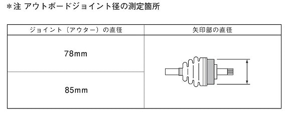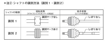※リビルト品及び、新車時とは異なるドライブシャフトで修理交換されている車輌の場合は適合が異なる場合がありますので、ご注意下さい。