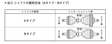 ※リビルト品及び、新車時とは異なるドライブシャフトで修理交換されている車輌の場合は適合が異なる場合がありますので、ご注意下さい。