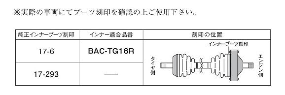 ※リビルト品及び、新車時とは異なるドライブシャフトで修理交換されている車輌の場合は適合が異なる場合がありますので、ご注意下さい。