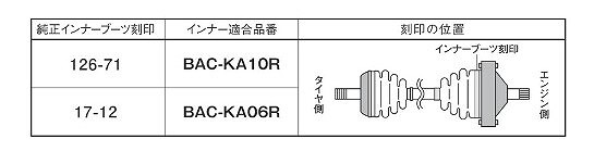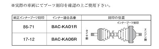 ※リビルト品及び、新車時とは異なるドライブシャフトで修理交換されている車輌の場合は適合が異なる場合がありますので、ご注意下さい。