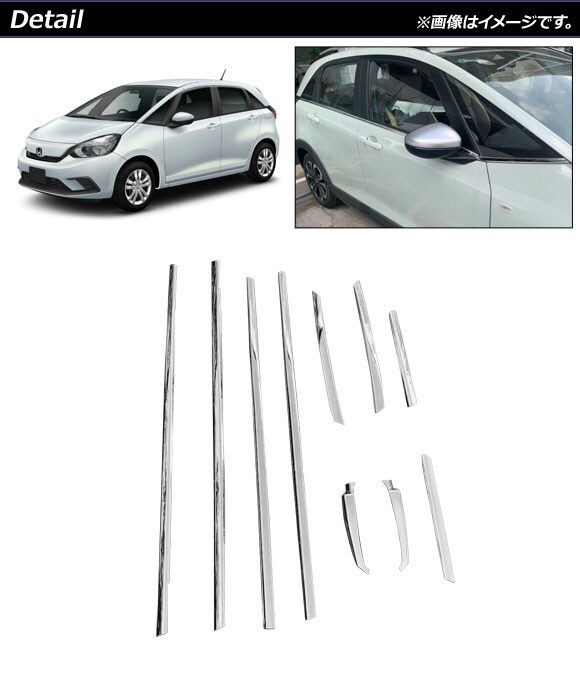ウインドウトリム ホンダ フィット/フィットe:HEV GR系 クロスター装着不可 鏡面シルバー ステンレス製 入数:1セット(10個) AP-DG188