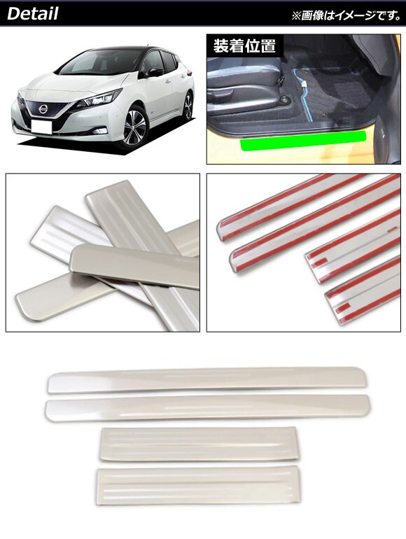 スカッフプレート 日産 リーフ ZE1 全グレード対応 シルバー ステンレス製 外側 入数:1セット(4枚) AP-SG172