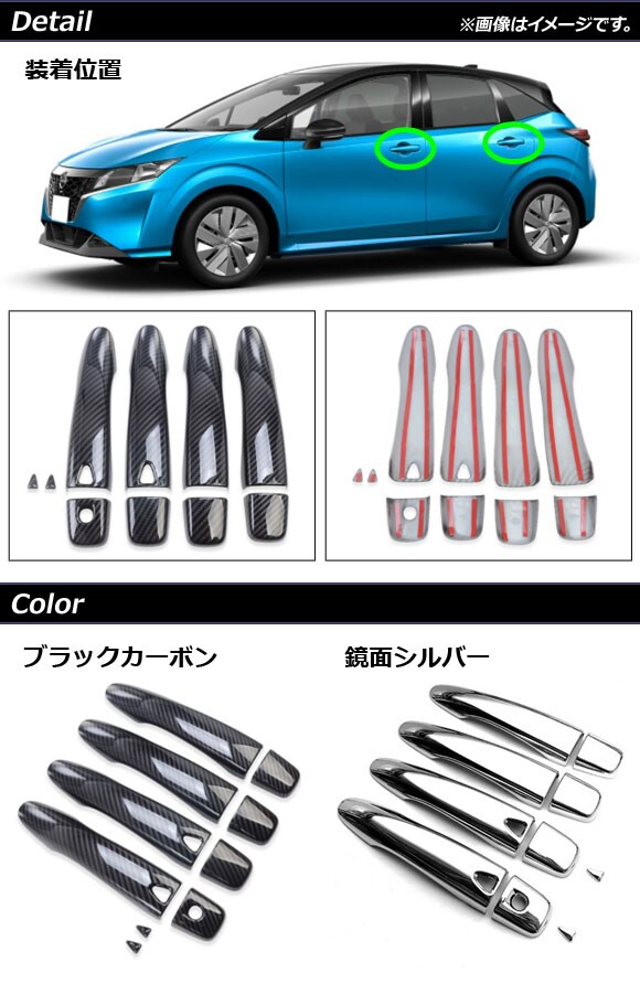 ドアハンドルカバー 日産 ノート E13系 全グレード対応 ブラックカーボン ABS製 入数:1セット(10個) AP-XT1015-BKC