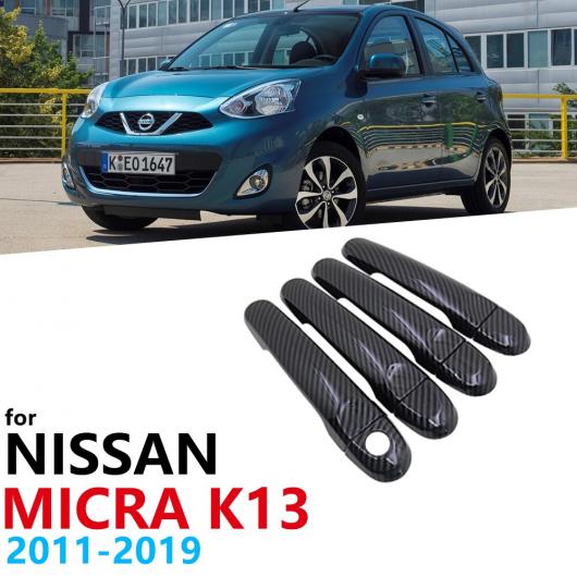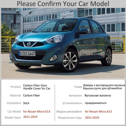 ブラック カーボンファイバー ドア ハンドル カバー トリム セット 適用: 日産 マイクラ K13 2011~2019 ステッカー 2012 ハンドルボウルボタンなし~ハンドルボウル 2ボタン AL-NN-2704 AL