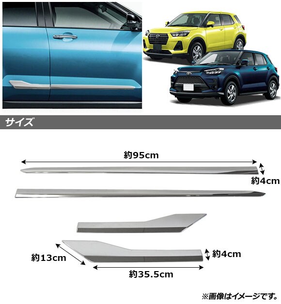 サイドドアガーニッシュ トヨタ ライズ A200A/A210A 2019年11月~ 鏡面シルバー ABS製 入数:1セット(4個)