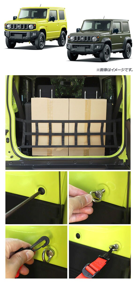 トランクネット スズキ ジムニー/ジムニーシエラ JB64W/JB74W 2018年07月~ ブラック アイボルト付き AP-AS434-BK