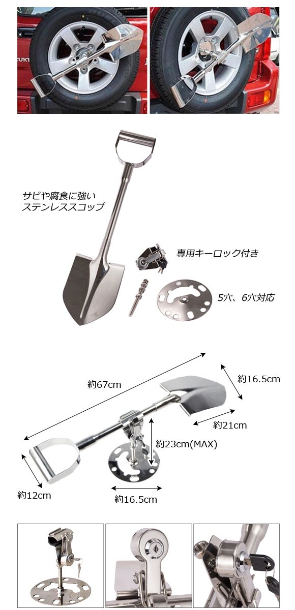 AP 汎用 スペアタイヤスコップ ステンレス製 鍵付き AP-4T722