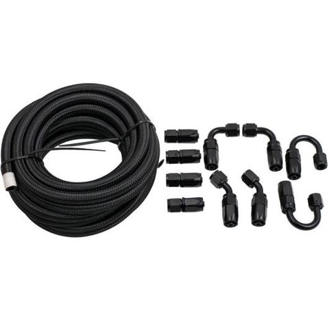 20FT AN6 6AN ナイロン 編み込み オイル フューエル ライン + ホース アダプタ キット ブラック AL-NN-4664 AL