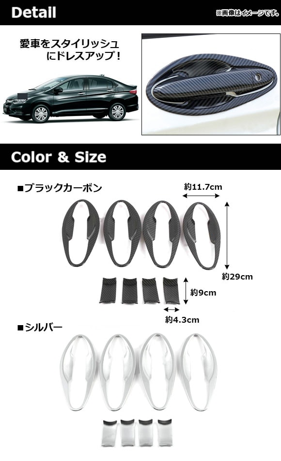 ドアハンドルインナーカバー ホンダ グレイス GM系 2014年~2021年 ブラックカーボン ABS製 入数:1セット(8個) AP-XT1071-BKC