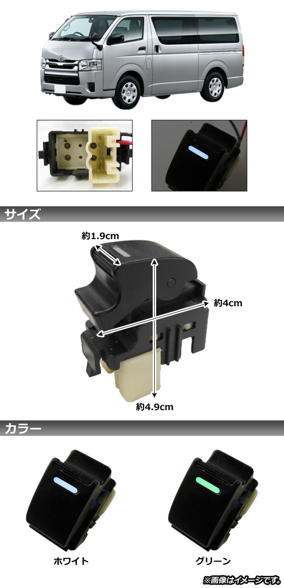 パワーウインドウスイッチ トヨタ ハイエース/レジアスエース 200系 1/2/3/4/標準/ワイド/DX/SGL 2004年08月~ ホワイト LED付き AP-EC588-WH