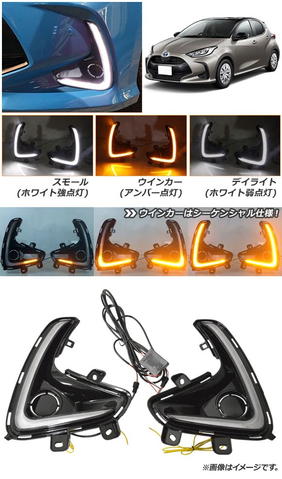 LEDデイライト トヨタ ヤリス KSP200系/MXP10系 2020年02月~ ホワイト/アンバー シーケンシャルウインカー機能付き 入数:1セット(左右) AP-LL366