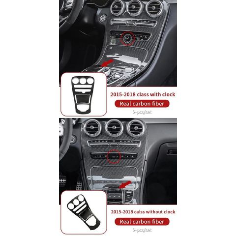 リアル カーボンファイバー コントロール パネル 適用: 2015 + メルセデス・ベンツ W205 AMG クーペ/インテリア トリム C63 メルセデス C カーボン 時計・カーボン 時計なし AL-NN-7806 AL
