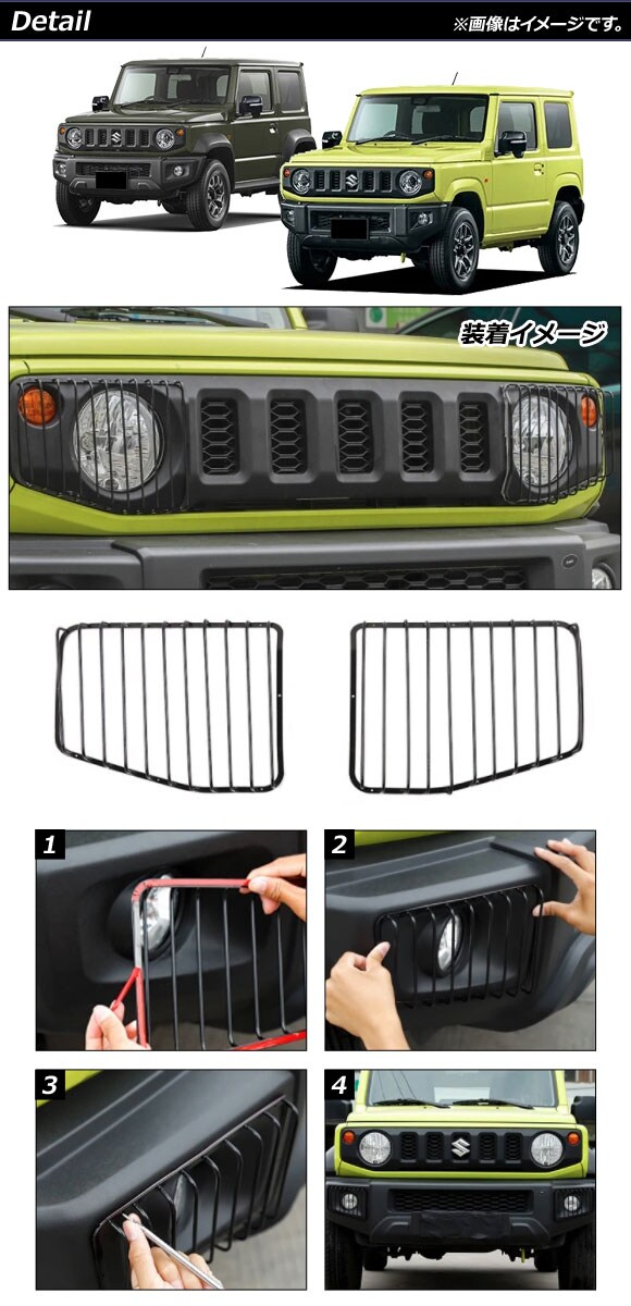 ヘッドライトカバー スズキ ジムニー/ジムニーシエラ JB64W/JB74W 2018年07月~ ブラック 鉄製 入数:1セット(左右) AP-XT1205