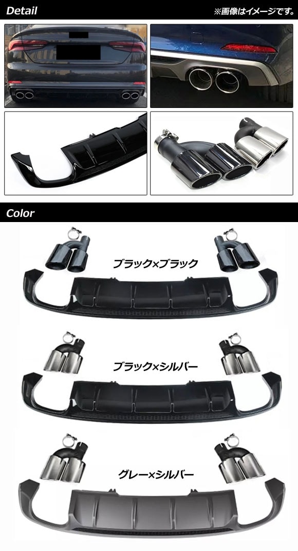 ディフューザー&マフラーカッターセット アウディ A5/S5 F5 Sライン 2017年~2019年 ブラック×ブラック ABS樹脂製 AP-XT1241-BKBK