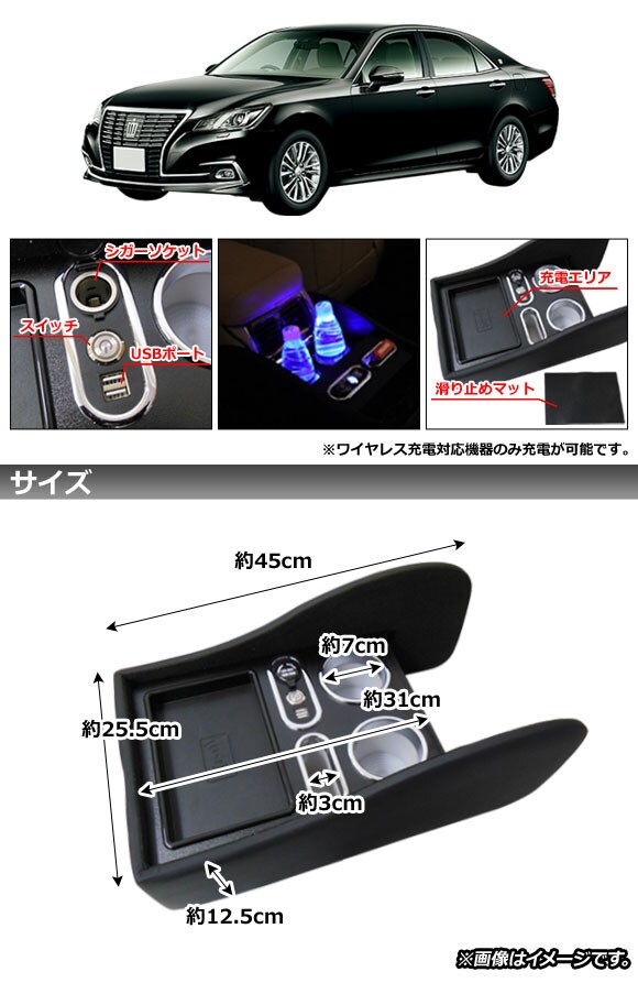 リアコンソールボックス トヨタ クラウン 210系 2012年12月~2018年06月 ブラック 充電機能/LED照明/シガーソケット/USBポート付き AP-EC602