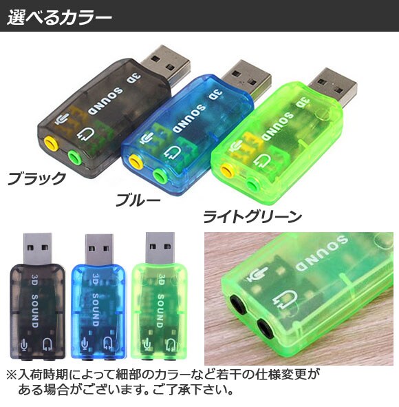 USBサウンドアダプター バーチャル5.1ch 3.5mm入力/出力ジャック パソコンに挿すだけ! 選べる3カラー AP-UJ0223