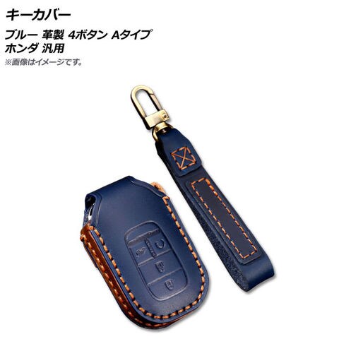 キーカバー ブルー 革製 4ボタン Aタイプ ホンダ 汎用 AP-AS494-A-BL
