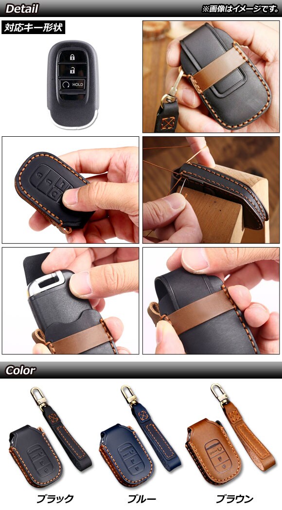 キーカバー ブラック 革製 3ボタン ホンダ 汎用 AP-AS494-C-BK