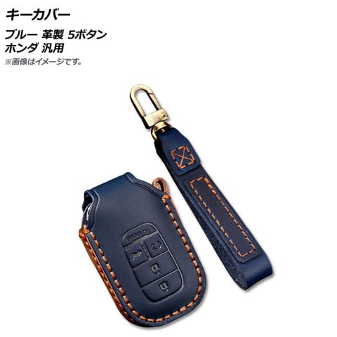 キーカバー ブルー 革製 5ボタン ホンダ 汎用 AP-AS494-D-BL