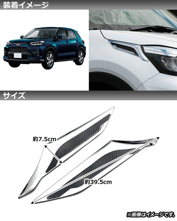 ヘッドライトガーニッシュ ダイハツ ロッキー A200S/A210S 2019年11月~ シルバー×ブラックカーボン ABS製 入数:1セット(2個)