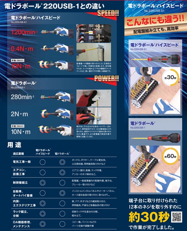 締付けスピードが電ドラボールの4倍速い。