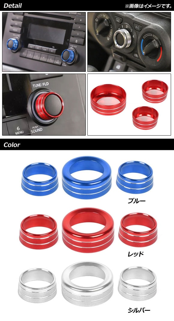 ダイヤルリングカバー スズキ ジムニー/ジムニーシエラ JB64W/JB74W 2018年07月~ レッド アルミ製 入数:1セット(3個) AP-IT1608-RD