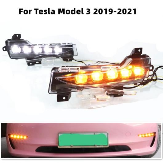 適用: テスラ/TESLA モデル 3 2018 2019 2020 21 アクセサリー DRL12V ライト LED デイタイムランニングライト フロント フォグ ライト フロー ウインカー 2017-2020 AL-OO-1033 ALのレビュー