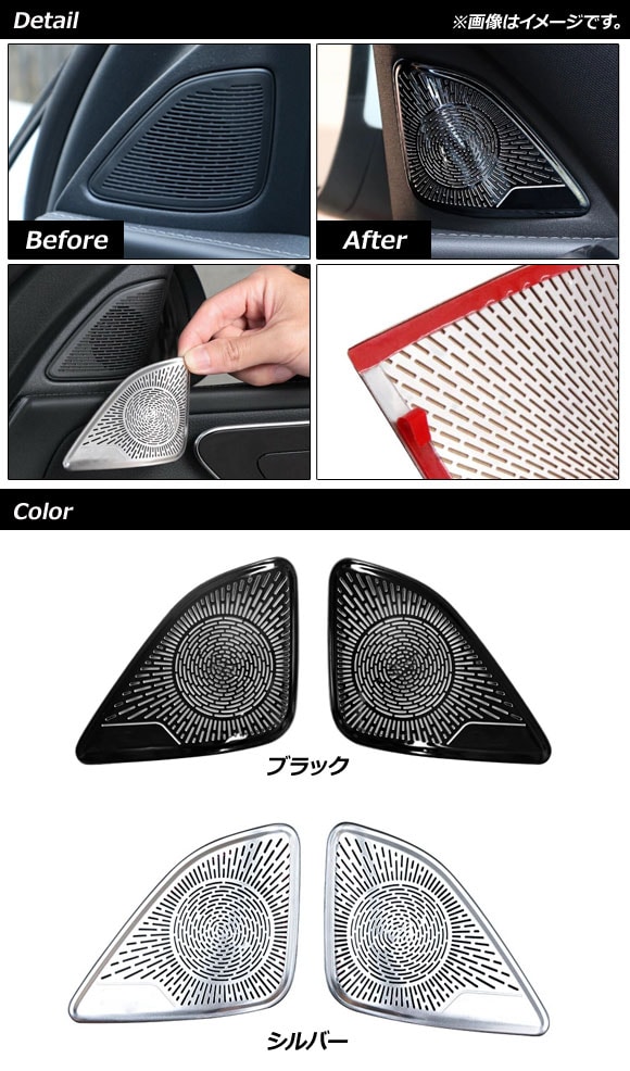 インナーピラースピーカーパネル メルセデス・ベンツ Cクラス W206 C180,C200,C220,C260,C300 2021年07月~ ブラック ステンレス製 入数:1セット(2個) AP-IT1672-BK