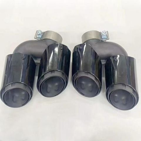 1ペア ブライトブラック 4アウト エキゾースト マフラー チップ パイプ カバー エキゾースト パイプ テール スロート 適用: ポルシェ/PORSCHE マカン 2014-2021 3層 AL-OO-2577 AL