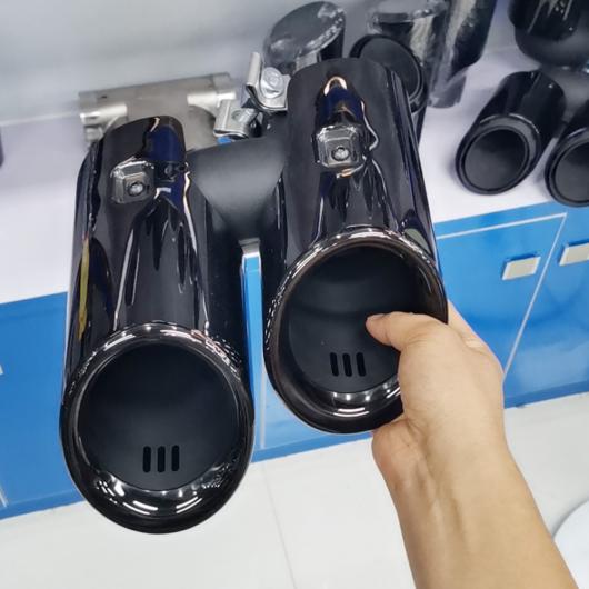 1ペア ブライトブラック 4アウト エキゾースト マフラー チップ パイプ カバー エキゾースト パイプ テール スロート 適用: ポルシェ/PORSCHE マカン 2014-2021 シングル レイヤー AL-OO-2577 AL