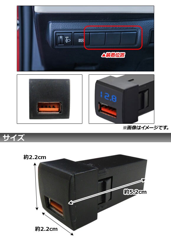 サイズ/タイプ:電圧計+QC3.0 USBポート