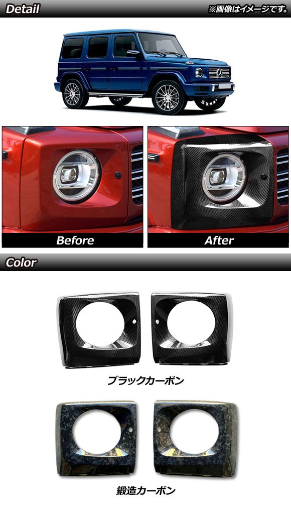 ヘッドライトカバー メルセデス・ベンツ Gクラス W463 G500,G63 MC後 2018年~ 鍛造カーボン カーボンファイバー製 入数:1セット(左右) AP-XT1444-COL2