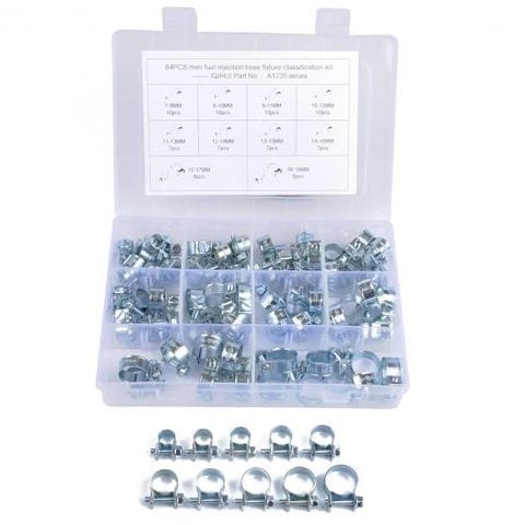 7-18mm ミニ クランプ フューエル インジェクション ホース エア ホース クランプ アソート キット ディーゼル ガソリン パイプ クリップ 84ピース/セット AL-OO-4532 AL