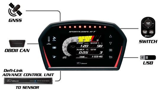 ※ADVANCEシステムからセンサーデータを取得したい場合はDefi-Link ADVANCE コントロールユニットや各種センサーを取り付ける必要があります。