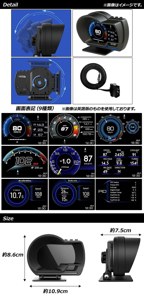 速度計 オドメーター メーター GPS 時計 計測器 時間 時刻 日付 衛星 衛星測位 座標 コンパス 速度 車速 スピード 回転速度 RPM 車間距離 車間 距離 水温 ターボ ターボ増圧 速さ 警告 測定 機能 電源 スイッチ ボタン バッテリー 電圧 走行 運転 ダッシュボード コンソール インリアパネル インパネ パネル 車載 車内 取り付け 増設 設置 便利 部品 内装 インテリア インテリアパーツ ドレスアップ カスタマイズ カスタム アクサセリー アクセサリ 装飾 装飾パーツ 日本語 Japanese ヘッドアップディスプレイ 便利グッズ 電装 内装パーツ