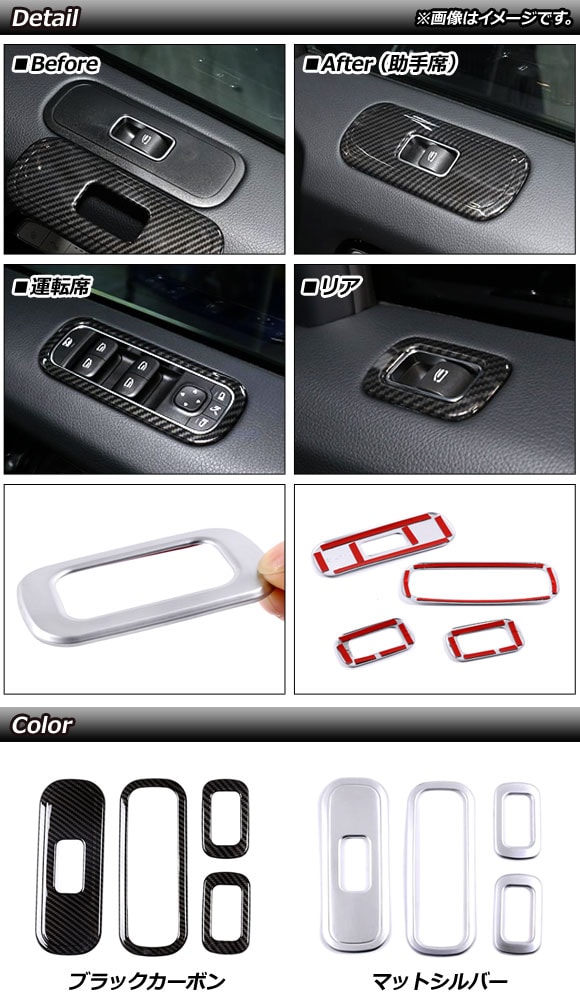 パワーウインドウスイッチカバー メルセデス・ベンツ Gクラス W463 G350,G400,G550,G63 MC後 2018年~ ブラックカーボン ABS製 入数:1セット(4個) AP-IT1727-BKC