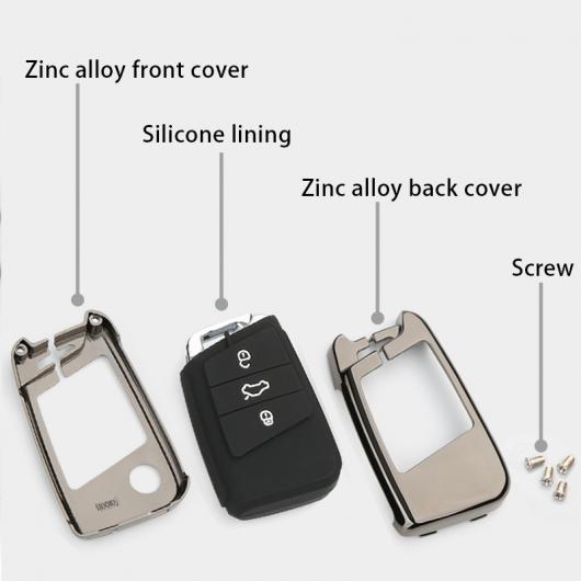 亜鉛 合金+シリコン キー カバー ケース 適用: シュコダ スペルブ 3 A7 適用: フォルクスワーゲン/VOLKSWAGEN VW パサート B8 ゴルフ キー フォブ シェル カバー アクセサリー ブラック・シルバー AL-OO-6167 AL