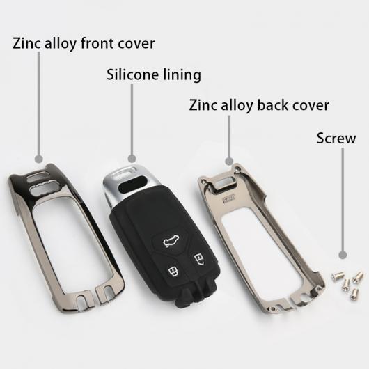 亜鉛 合金+シリコン キー カバー ケース 適用: アウディ/AUDI A4 B9 A5 S4 S5 RS5 Q5 8R Q7 4M TT 8S MK3 2015 2016 2017 2018 2019 アクセサリー ブラック・シルバー AL-OO-6171 AL