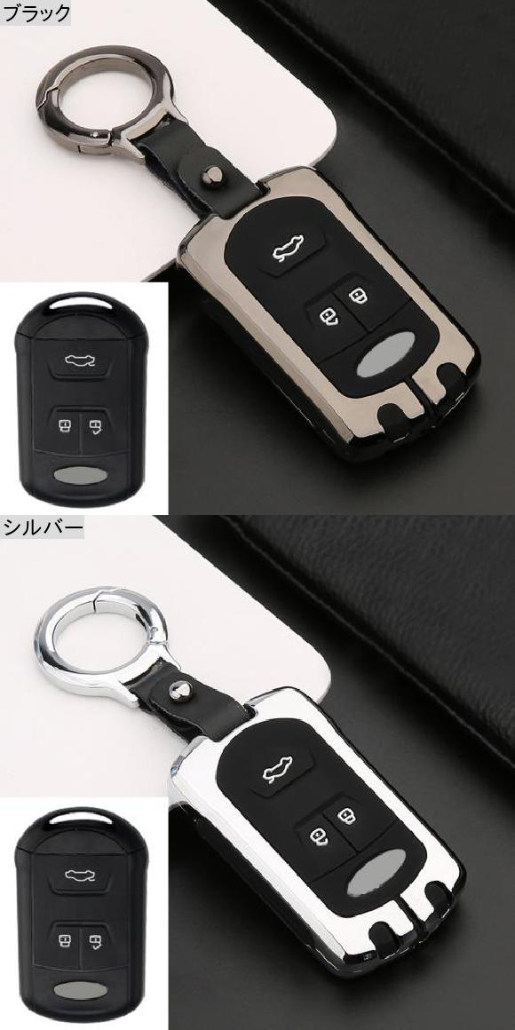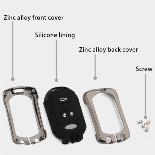 亜鉛 合金+シリコン リモート キーケース カバー 適用: 奇瑞汽車 Tiggo 3 5 奇瑞汽車 アリゾ 3 7 奇瑞汽車 E3 E5 スマート キー フォブ シェル アクセサリー ブラック・シルバー AL-OO-6192 AL
