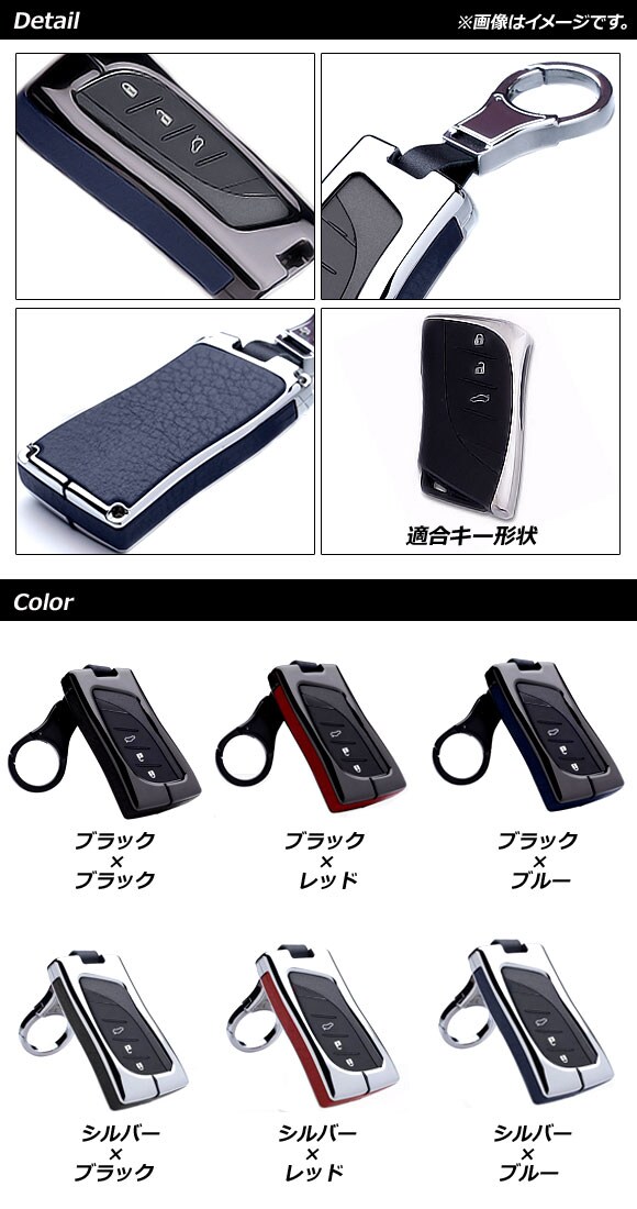 キーケース ブラック×レッド 亜鉛合金+本革 キーホルダー付き レクサス汎用 AP-AS570-BKRD