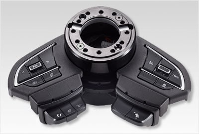 純正ステアリング上にあるスイッチを、社外ステアリングに交換する際に移設することができる専用のキットです。