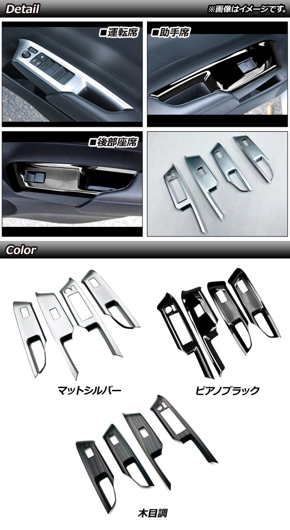 パワーウインドウスイッチカバー トヨタ アクア MXPK系 全グレード対応 2021年07月~ ピアノブラック ABS樹脂製 入数:1セット(4個) AP-IT1780-PBK
