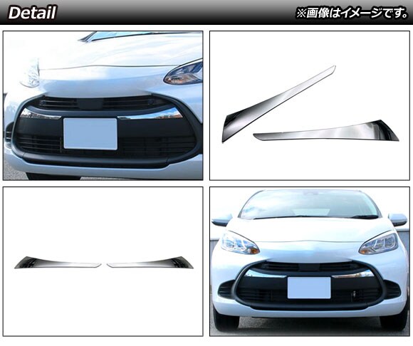 フロントグリルカバー トヨタ アクア MXPK系 全グレード対応 2021年07月~ 鏡面シルバー ABS樹脂製 入数:1セット(2個) AP-FG495
